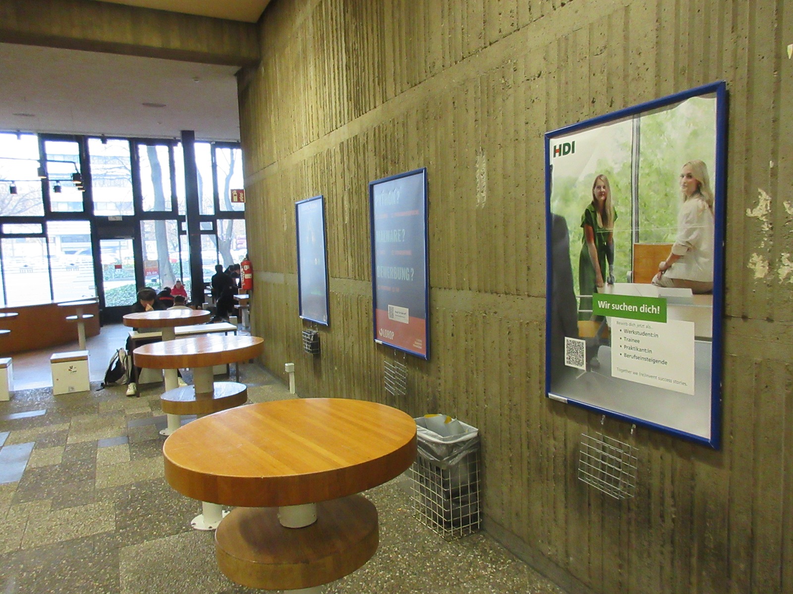 - Starke Sichtbarkeit durch gezielte Platzierung an über 50 Hochschulen