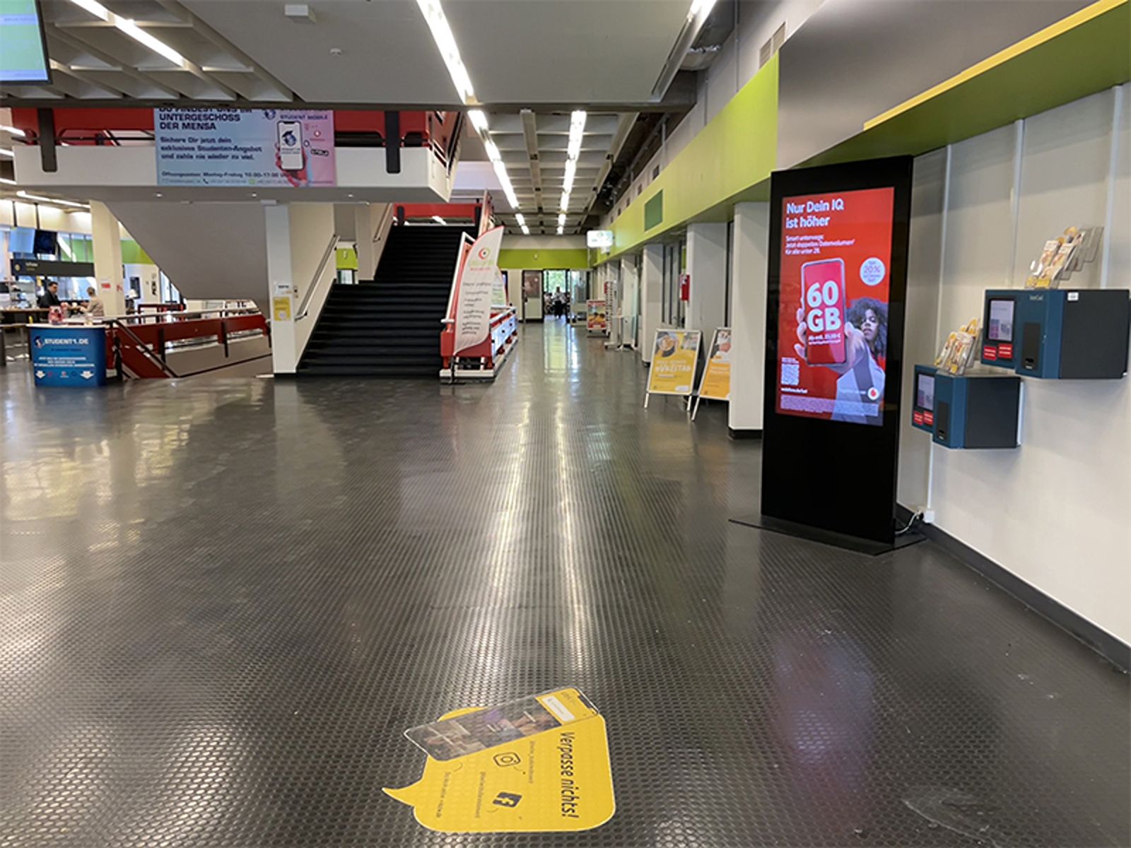 - Großflächige Platzierung klassischer und digitaler Werbemittel auf dem Campus