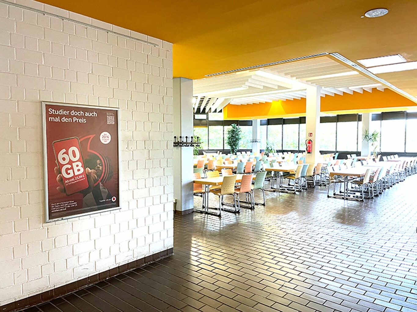 - Werbemittel: DIN A0-Plakate, City-Light-Poster, DOOH, Mediatower, Spannbanner, Uni-Kino-Werbung