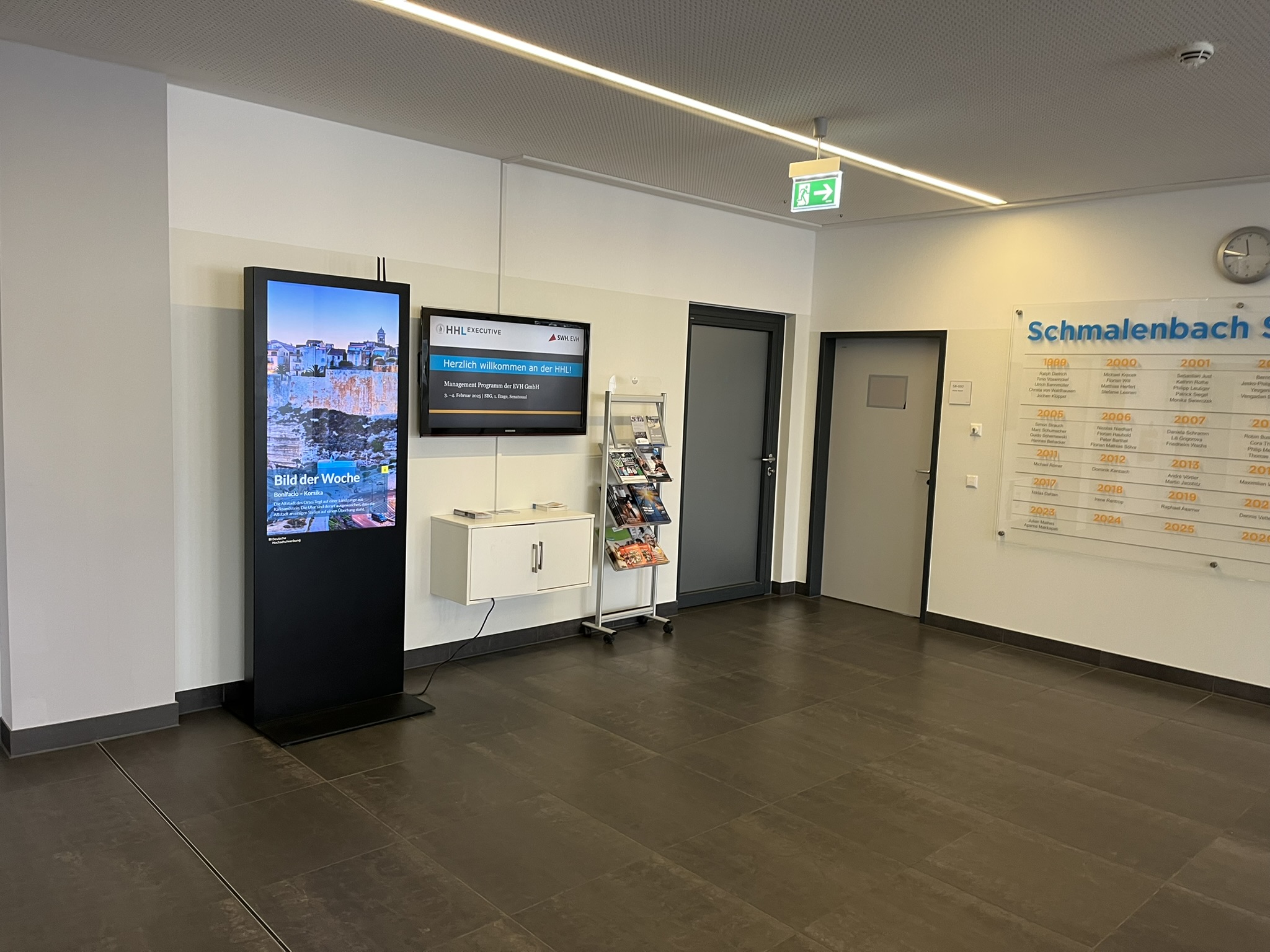 Als führende Anbieterin im Hochschulmarketing erweitern wir unsere Digital-out-of-Home (DOOH)-hardware um eine besonders innovative Lösung. Mit der DOOH-Stele Lena aus der Reihe FireProtected Pro setzen wir auf die weltweit einzige VdS 6024-zertifizierte DOOH-Stele, die auch in Flucht- und Rettungswegen sowie anderen hochfrequentierten Campusbereichen eingesetzt werden darf.