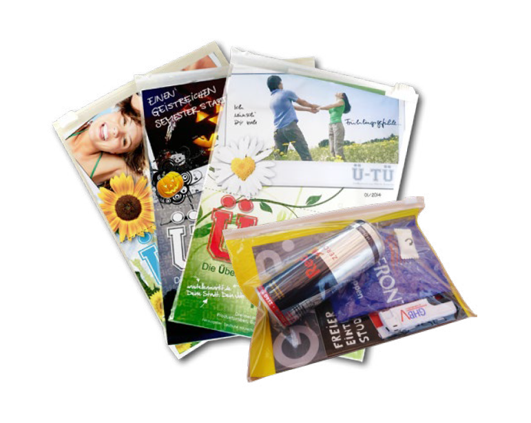 - Auf Wunsch erhalten Sie Ihre eigene, individuell gestaltete Tüte – exklusiv für Ihr Unternehmen und nur an den Hochschulen, die für Ihre Zielgruppe relevant sind.
