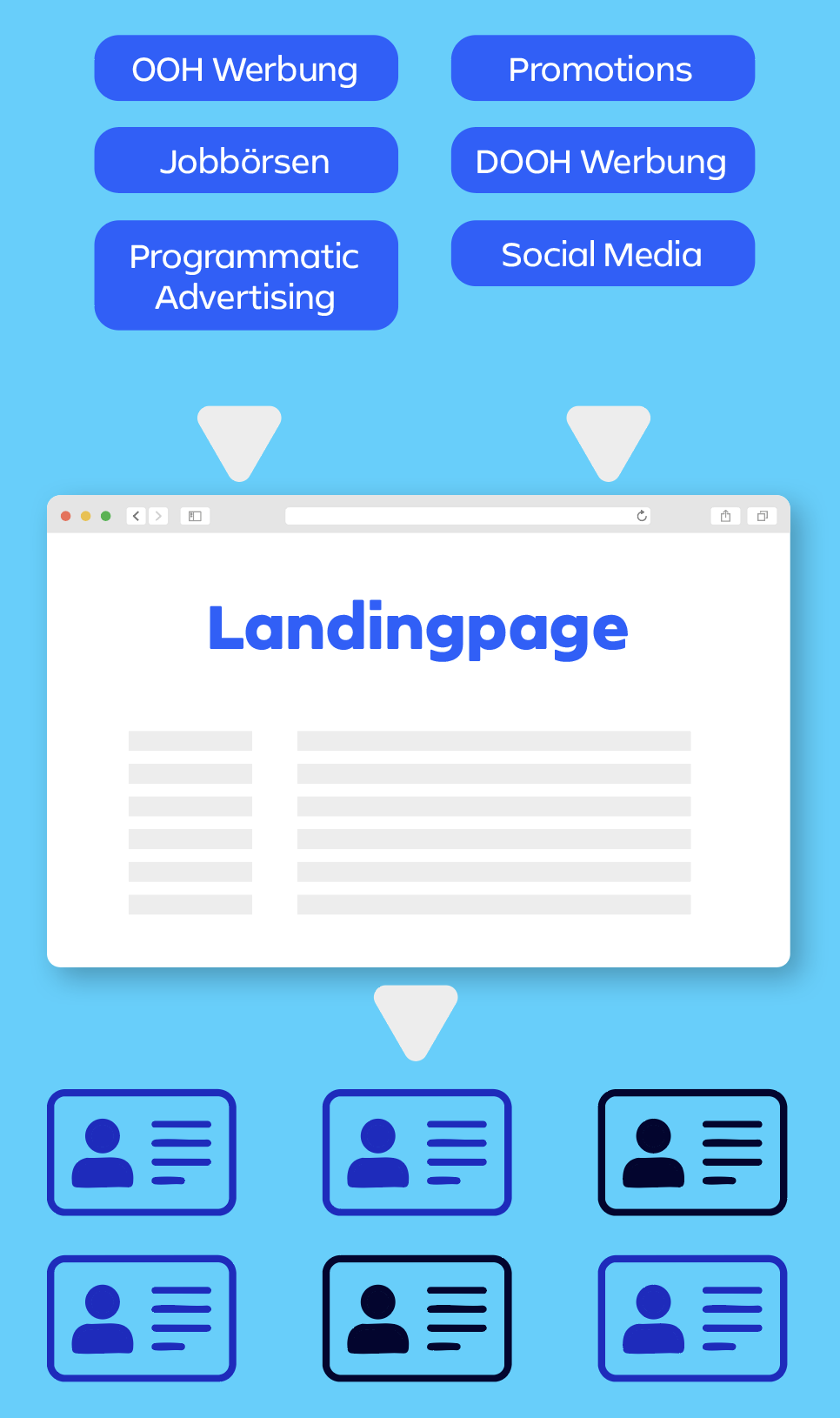 Jede Kampagne erhält eine maßgeschneiderte Landingpage, die die Arbeitgebermarke und die offenen Positionen optimal präsentiert. So wird ein informativ, überzeugend und conversionstarker digitaler Einstiegspunkt für interessierte Talente geschaffen.