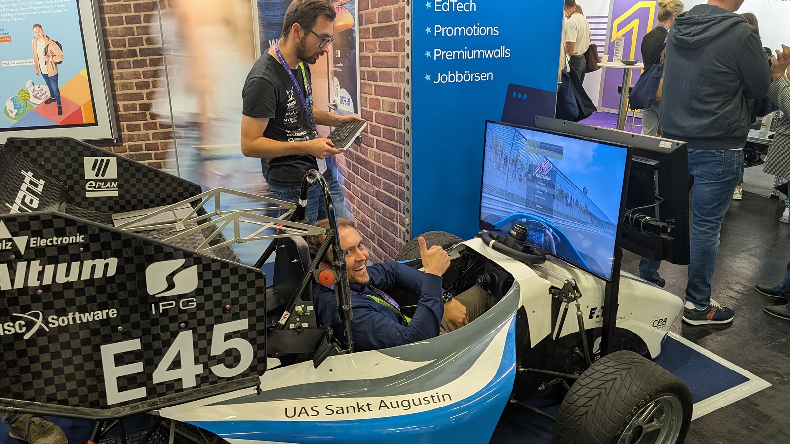 Neben spannenden Gesprächen und vielen tollen Möglichkeiten zur Ansprache der Fachkräfte von morgen kann man bei uns auch so richtig Gas geben! Zeigen Sie Ihr Können im Rennsimulator und sichern Sie sich einen unserer 3 attraktiven Tagespreise für die schnellste Runde auf der Strecke.